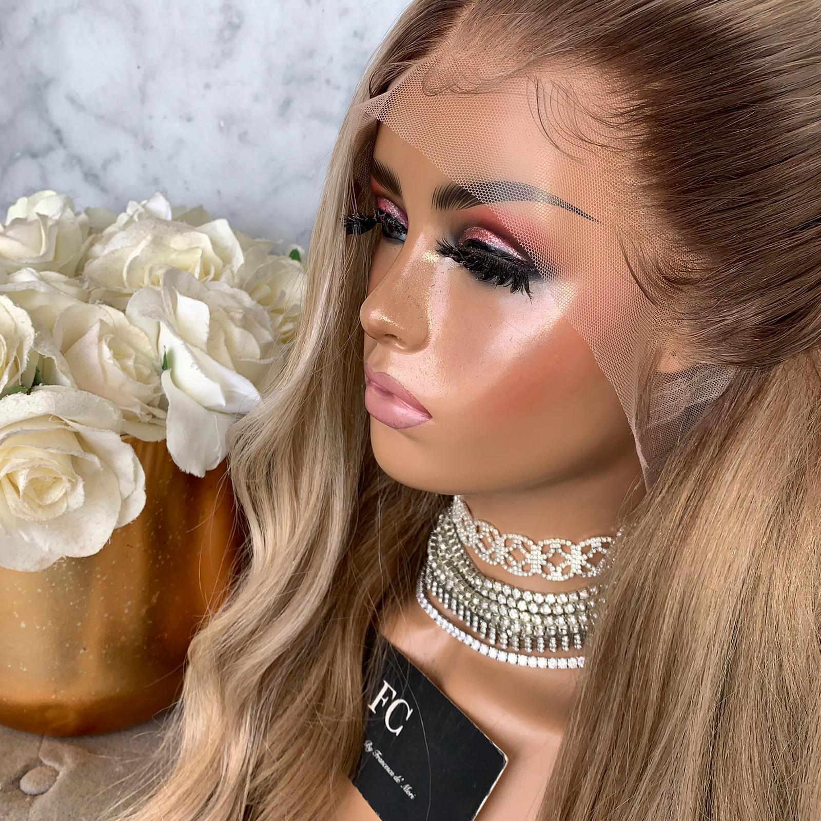 HER COLOUR: NATURAL DARK BROWN ROOT STRETCH FADING INTO SOFT CARAMEL ENDS