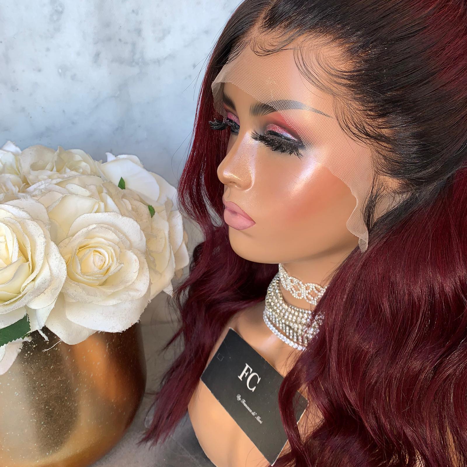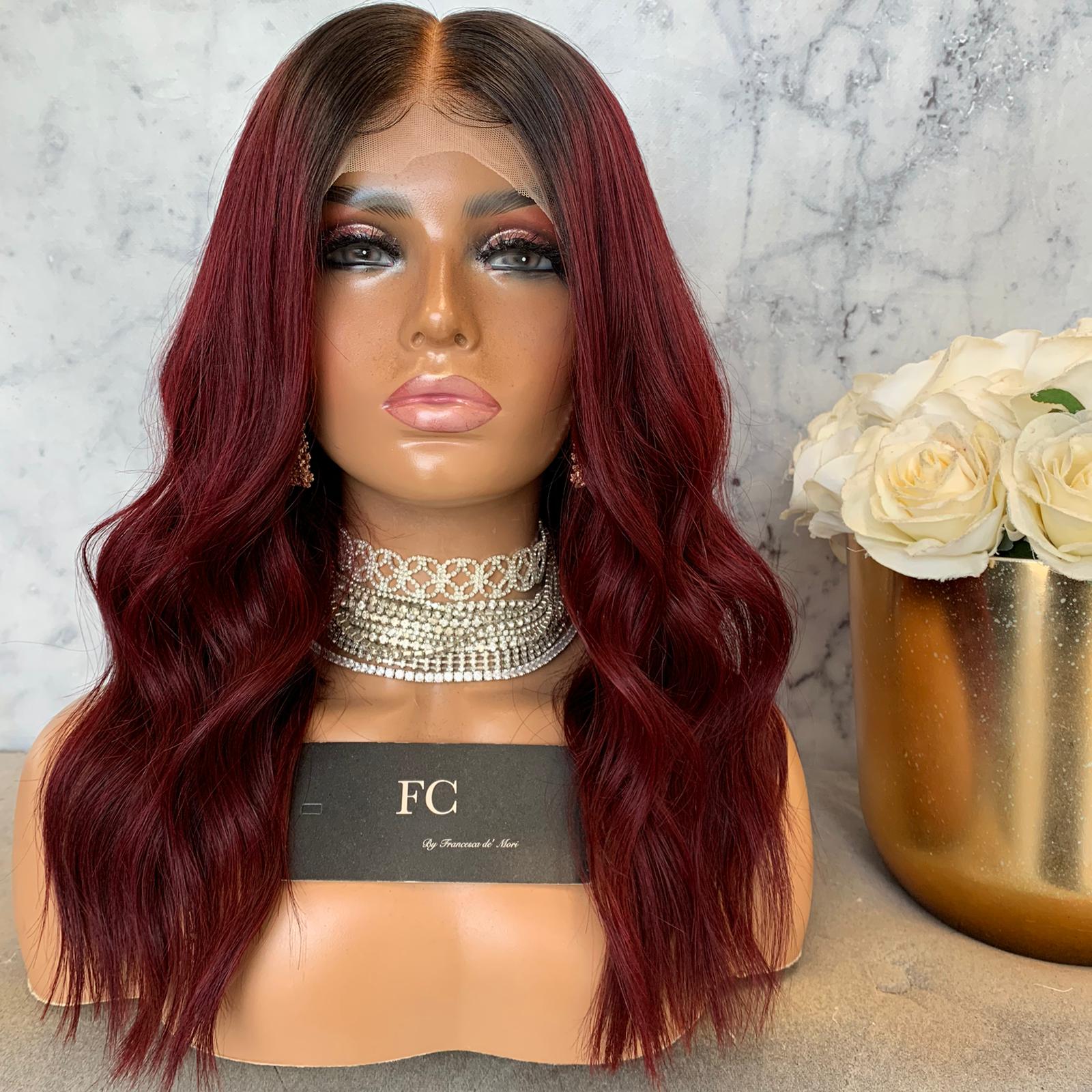 HER COLOUR: RAW VIRGIN CAMBODIAN CASHMERE ROOTS FADING INTO PLUM RED