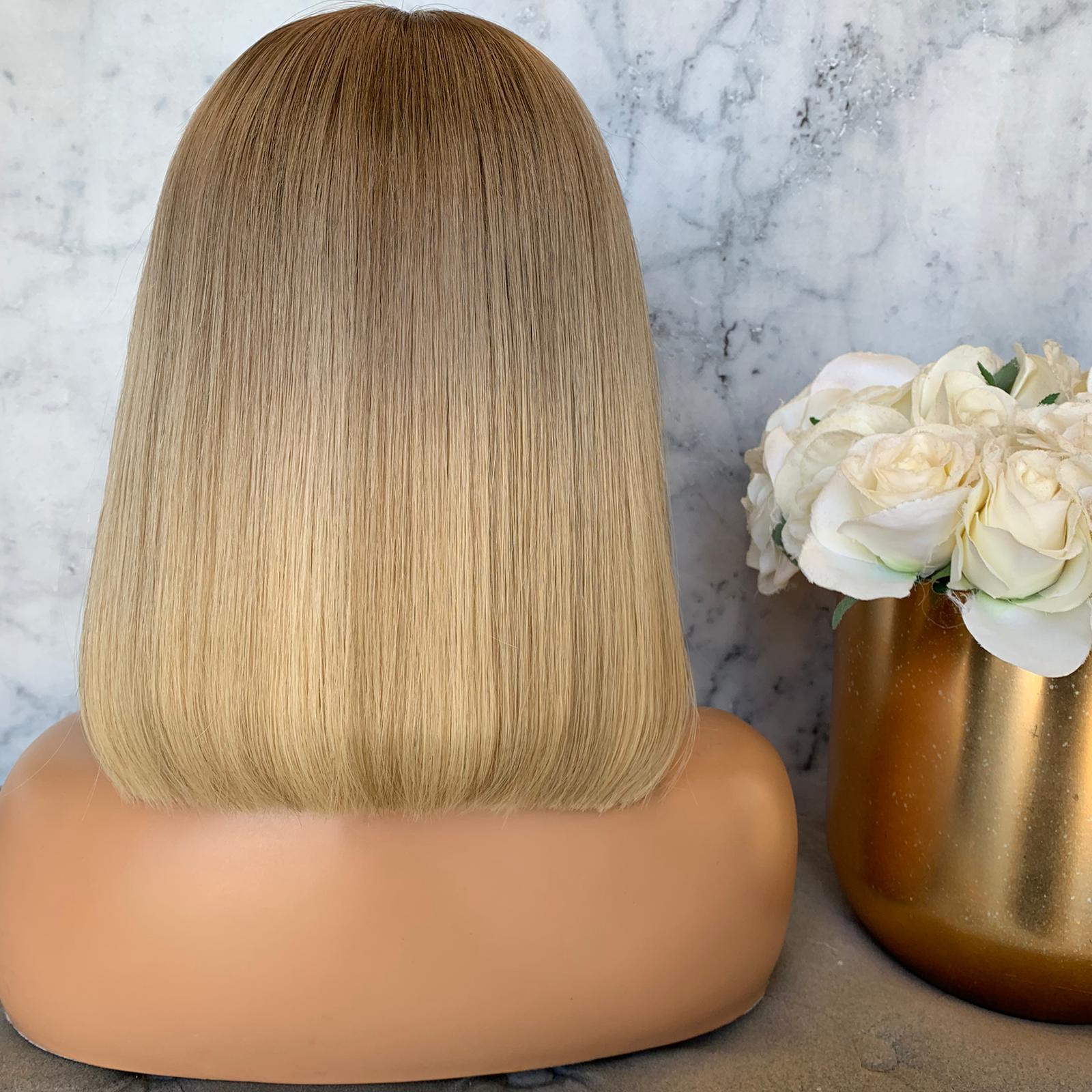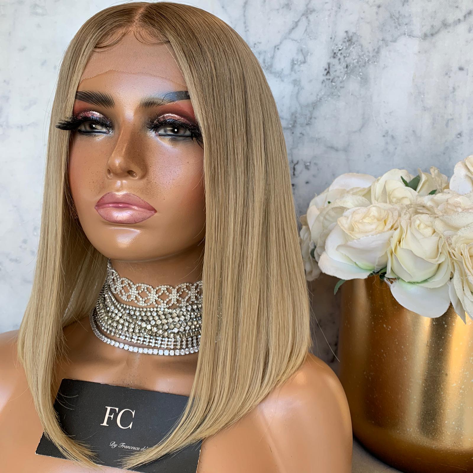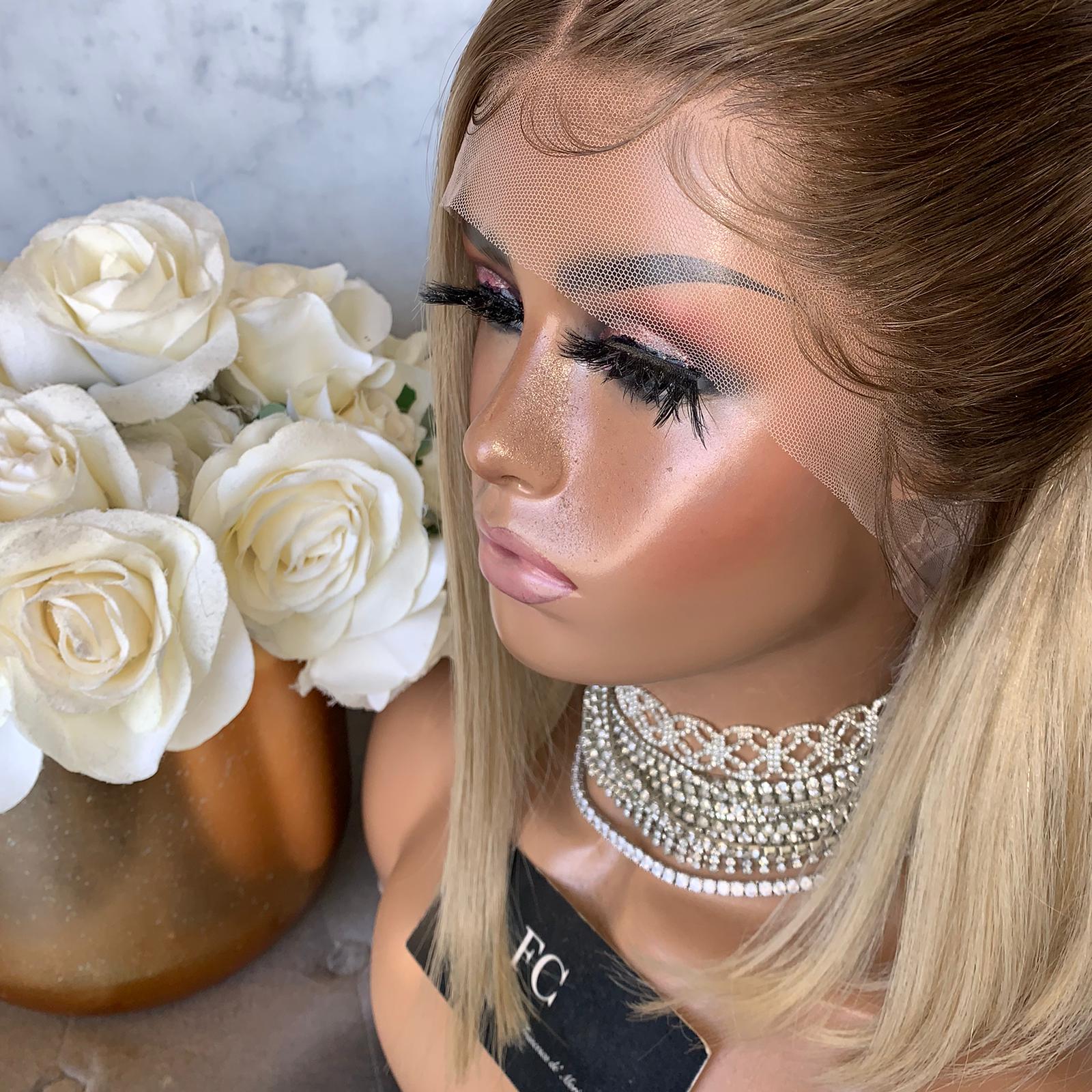 HER COLOUR: DARK BEIGE BLONDE ROOT FADING INTO A SOFT BLONDE WITH SCATTERED LOWLIGHTS