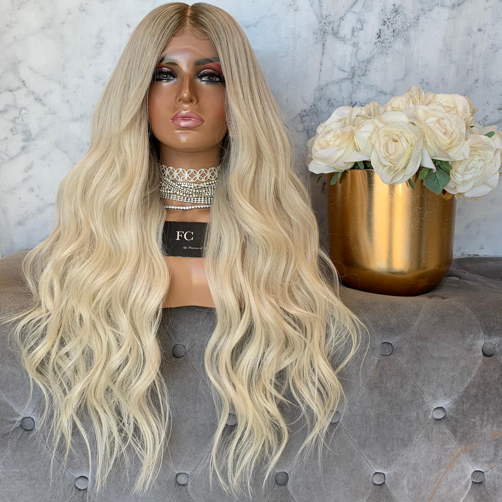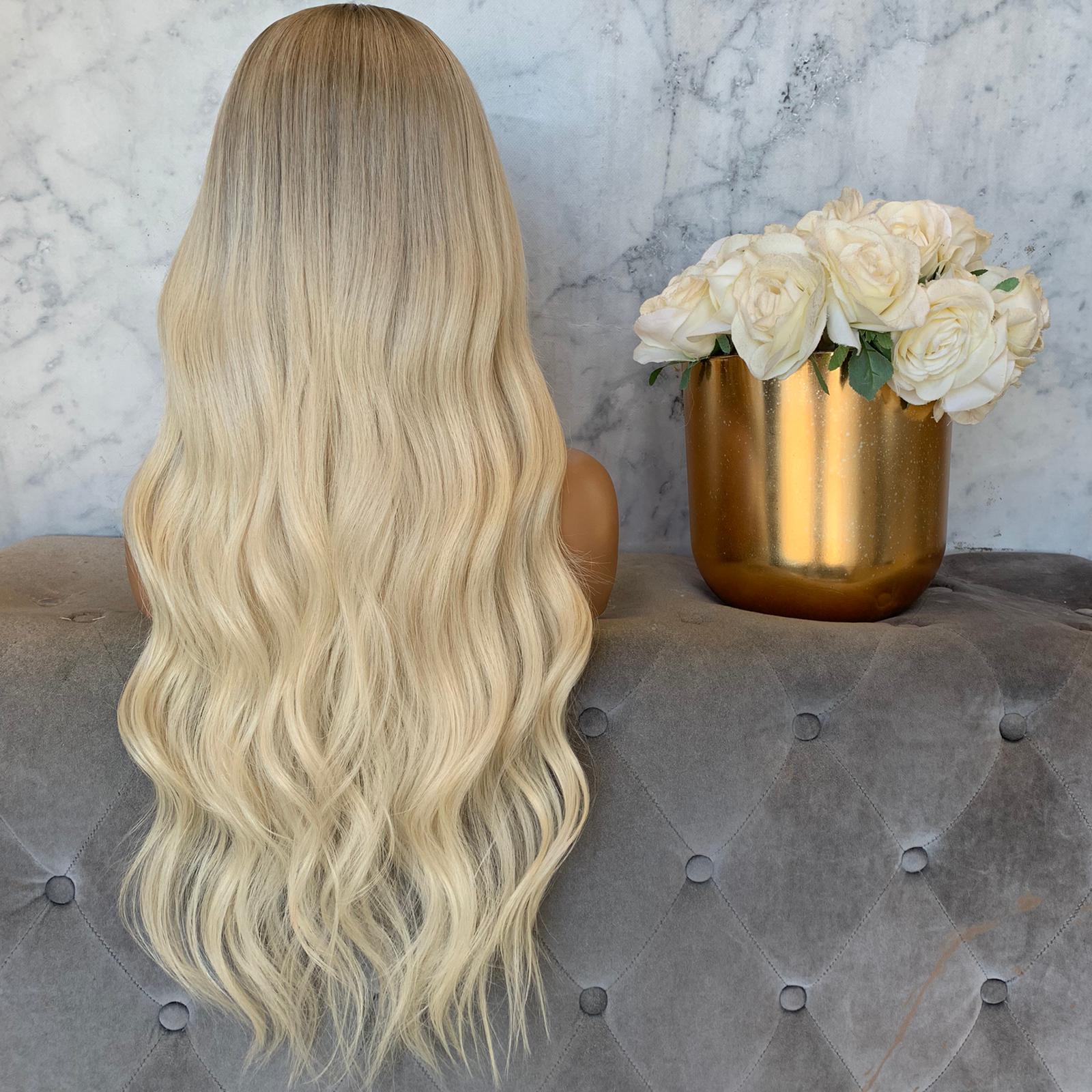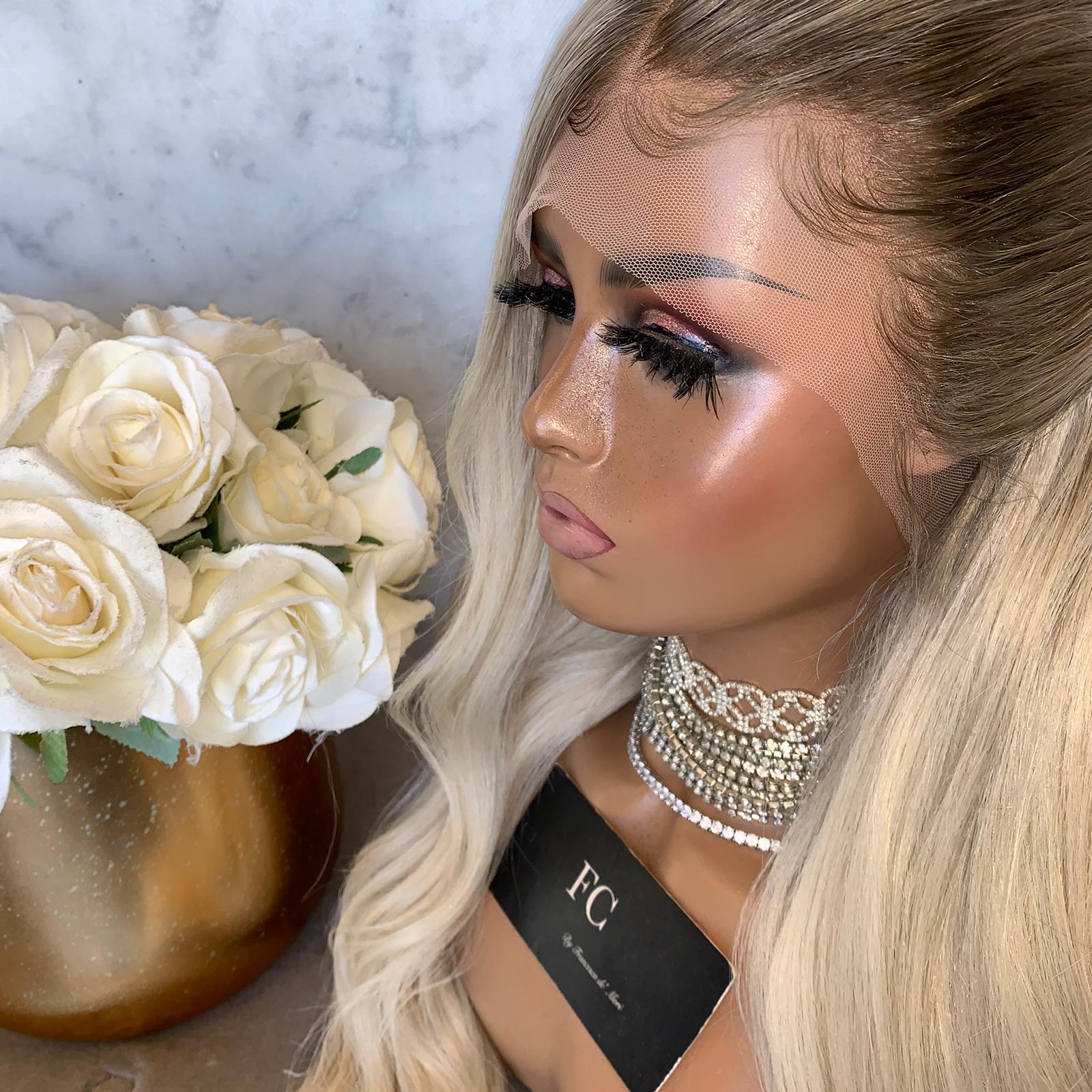 HER COLOUR: DARK ASH BLONDE ROOT STRETCH WITH CREAMY BLONDE ENDS AND FACE FRAMING HIGHLIGHTS
