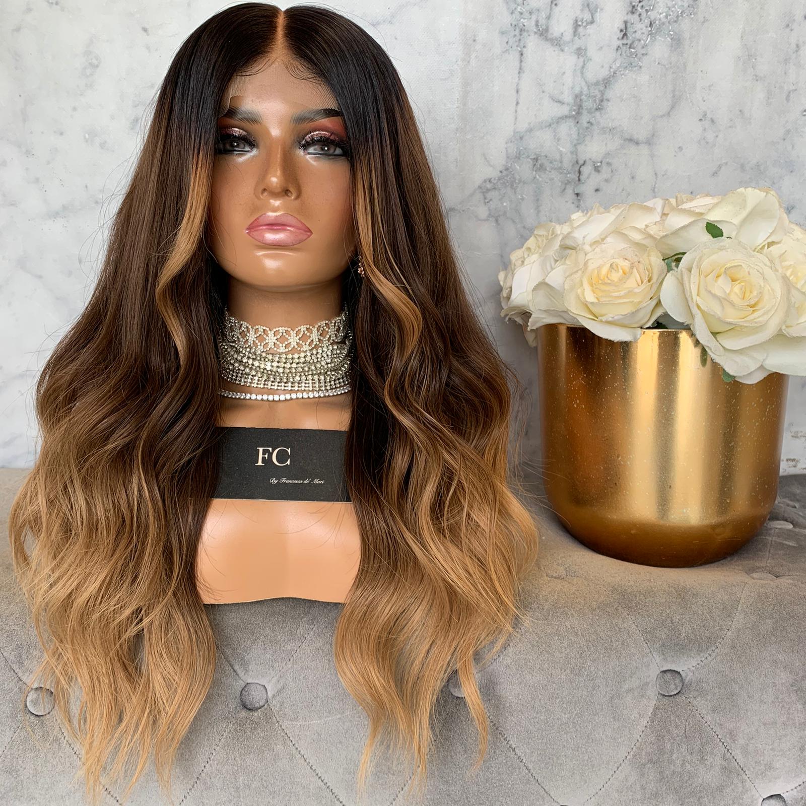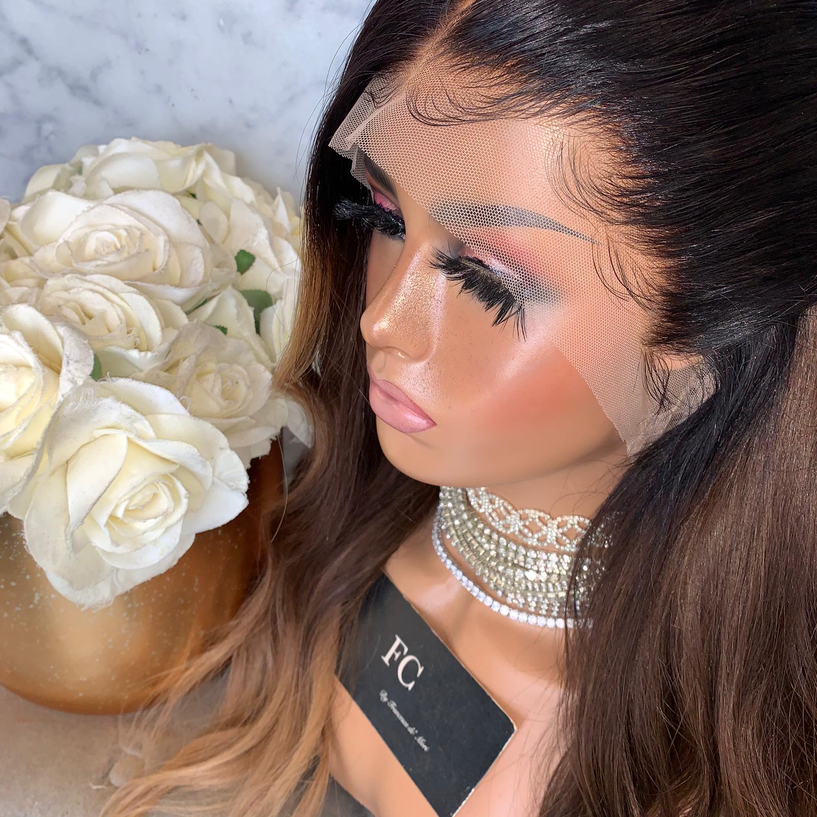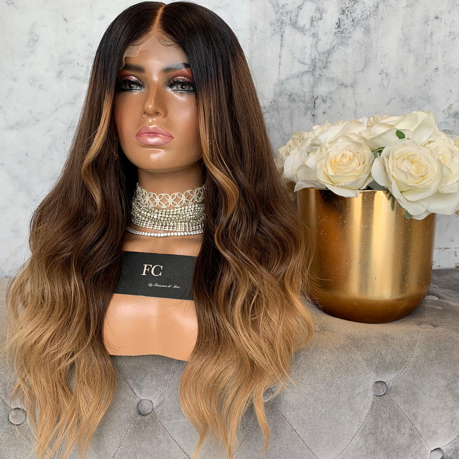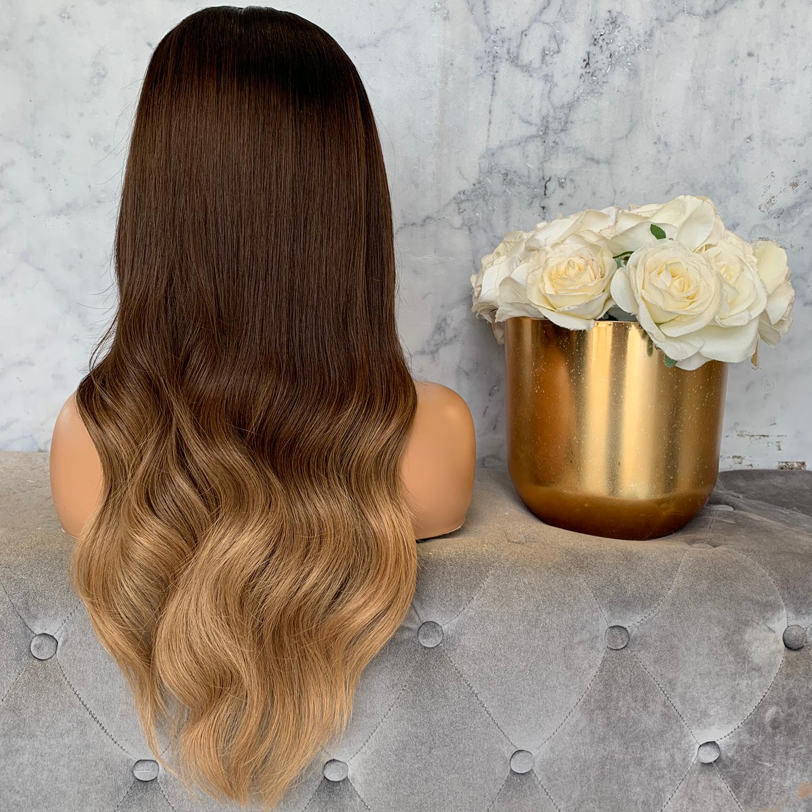 HER COLOUR: DARK BROWN ROOT STRETCH FADING INTO A MEDIUM BROWN OMBRÉ WITH FACE FRAMING HIGHLIGHTS